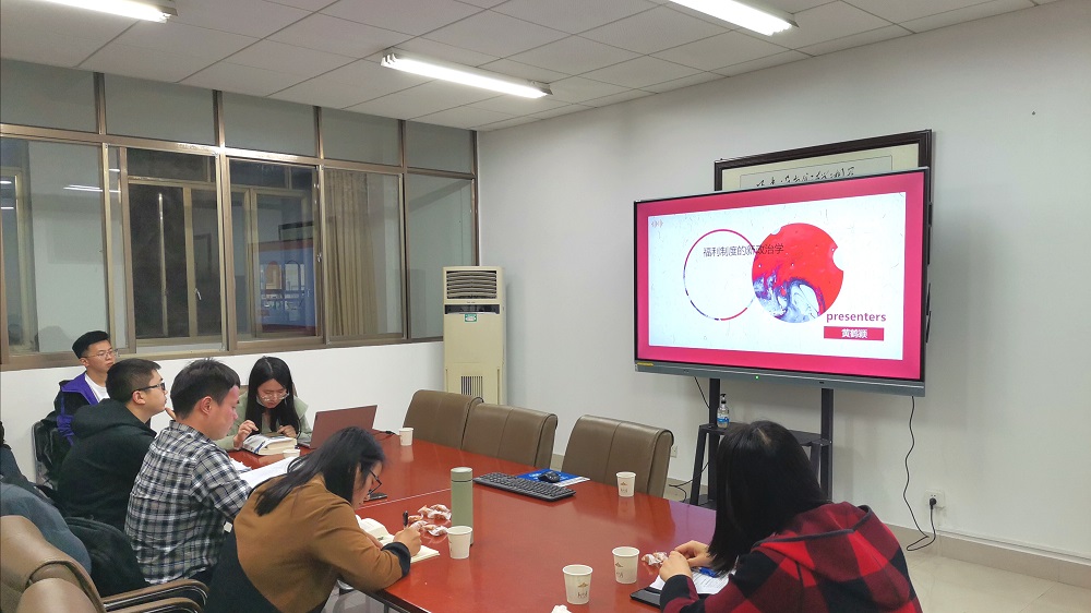 公共健康与社会保障研究所第3期研究生读书会在法学院423室成功举办。博士研究生王震,硕士研究生黄鹤颖、郭凤、代燕先后围绕《福利制度的新政治学》一书进行了读书分享。本次读书会由轮值教师万旋老师主持,何文老师作为点评嘉宾参与讨论。
