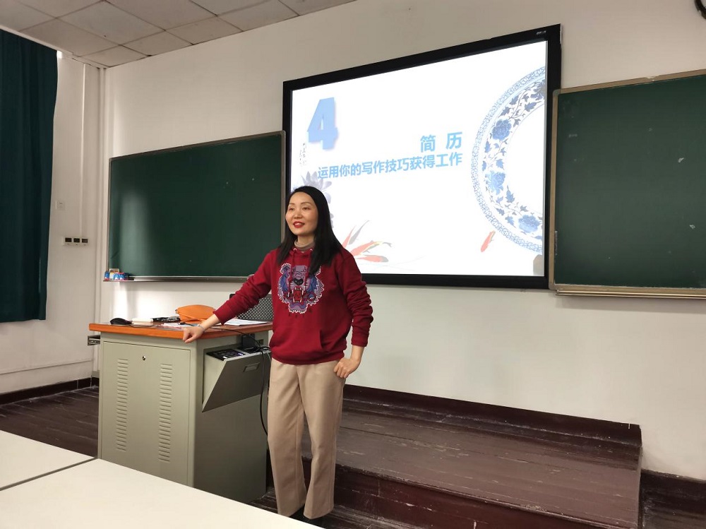 活动伊始,杨老师指出就业是求职者与招聘单位之间的双向选择,其核心是人岗匹配。而简历是求职的敲门砖,同学们应通过简历来展示一个符合岗位要求的自己。随后,杨老师介绍了撰写简历的准备工作。她强调准备一份简历之前,应对应聘岗位和自身能力进行分析,从而更好地实现人岗匹配的目标。紧接着,杨老师通过“简历制作十问”向同学们介绍了个人简历的制作流程。
