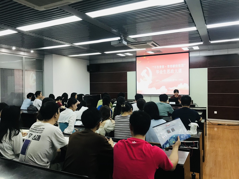 于法学楼404室开展“不负青春·青春献给祖国”毕业生思政大课。本次思政大课由学院党委书记付蓉芬主讲,全体2021届本科毕业生参加。