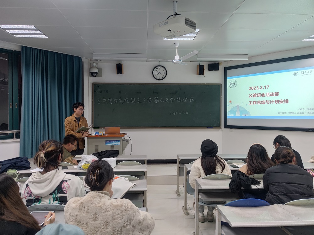 研究生会第六次全体会议在财院校区水上教学楼506教室召开,会议由研究生会执行主席徐一峰主持,研会全体成员参会。