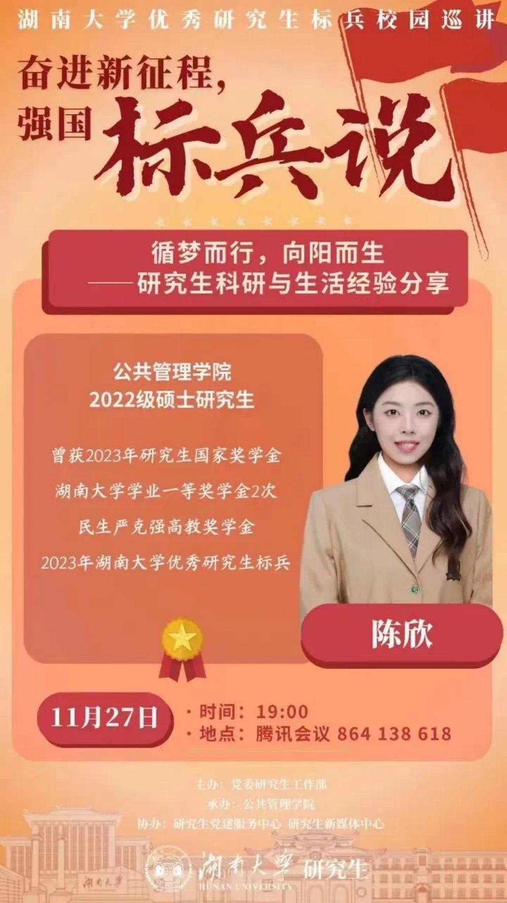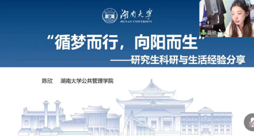 2022级硕士研究生陈欣以“循梦而行,向阳而生”为主题,就研究生科研与生活经验等内容进行了线上分享,偷拍网