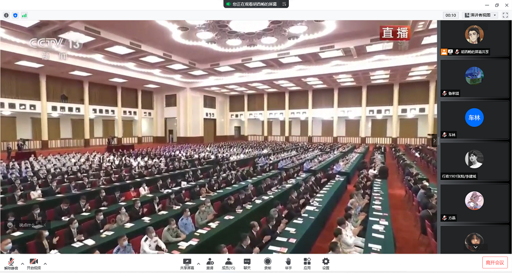 5月10日晚,为深刻领悟中国共青团成立一百周年的重要意义,行政管理1901班特组织全体成员观看学习习近平总书记在纪念中国共青团成立100周年大会上的讲话,本次活动采用线上腾讯会议的方式进行。