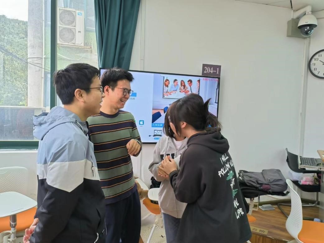 在微笑活动环节,同学们随机与周围的伙伴握手,开展自我介绍接龙活动,分享对研究生生活的印象,在一片欢声笑语中,大家渐入佳境,欢呼声与尖叫声此起彼伏,气氛十分活跃与温馨,也加深了同学们对彼此的了解。