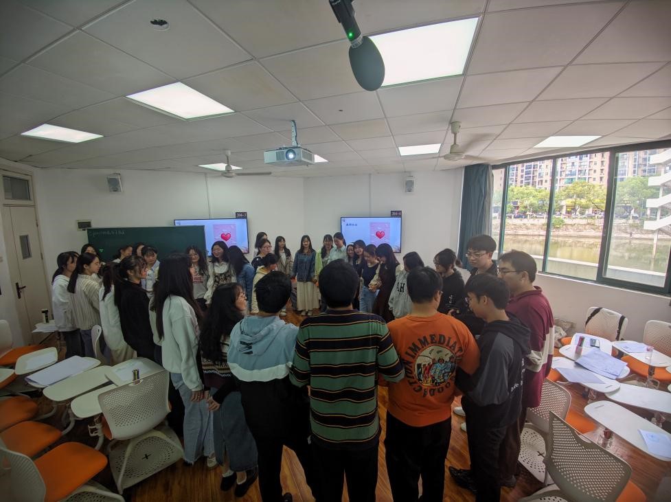 活动的最后,杨老师对活动进行总结,组织全体同学围成心形形状,进行真情“告白”:“感谢我的伙伴们,感谢你们的倾听与分享,我会努力成长。”