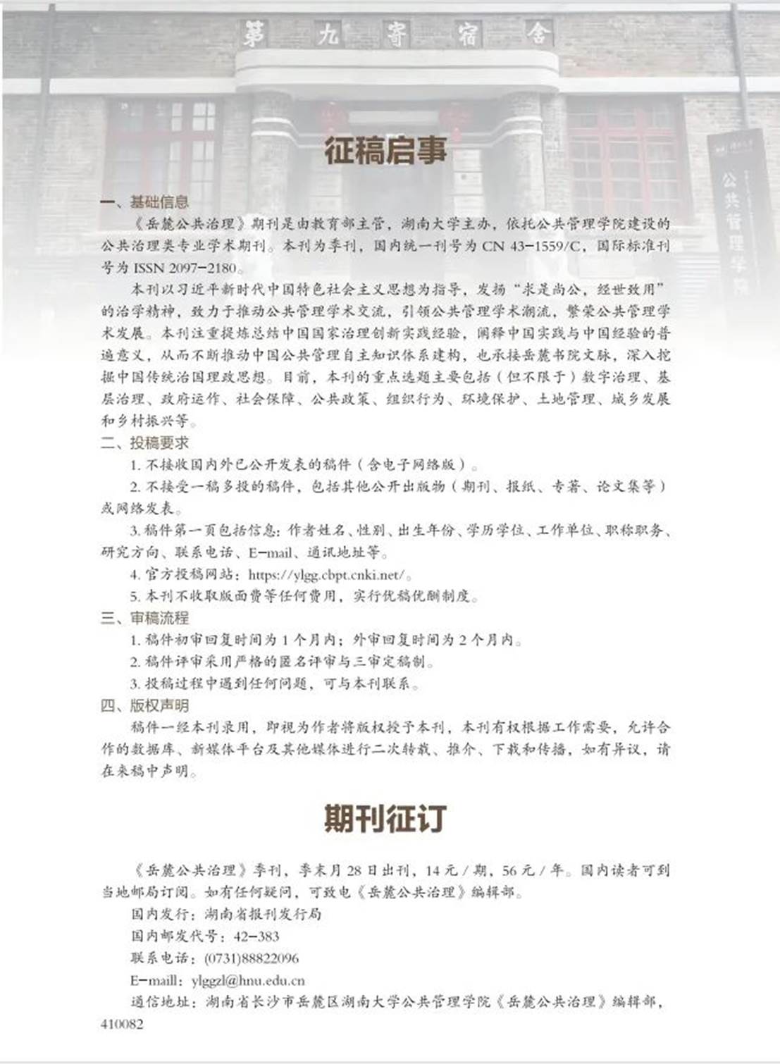新刊速览丨《岳麓公共治理》2024年第2期(总第7期)目录及摘要